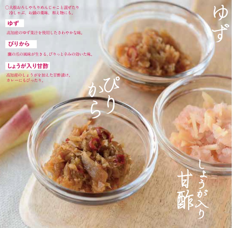 【ゆず】 普段は刺身のつまであったり、冷奴やお味噌汁の香りつけ野菜として利用されるみょうがですが、その美味しさを手軽に味わっていただきたいとの思いから商品開発しました。 当商品は、みょうがの茎の部分を粗刻みし、昆布とかつ […]